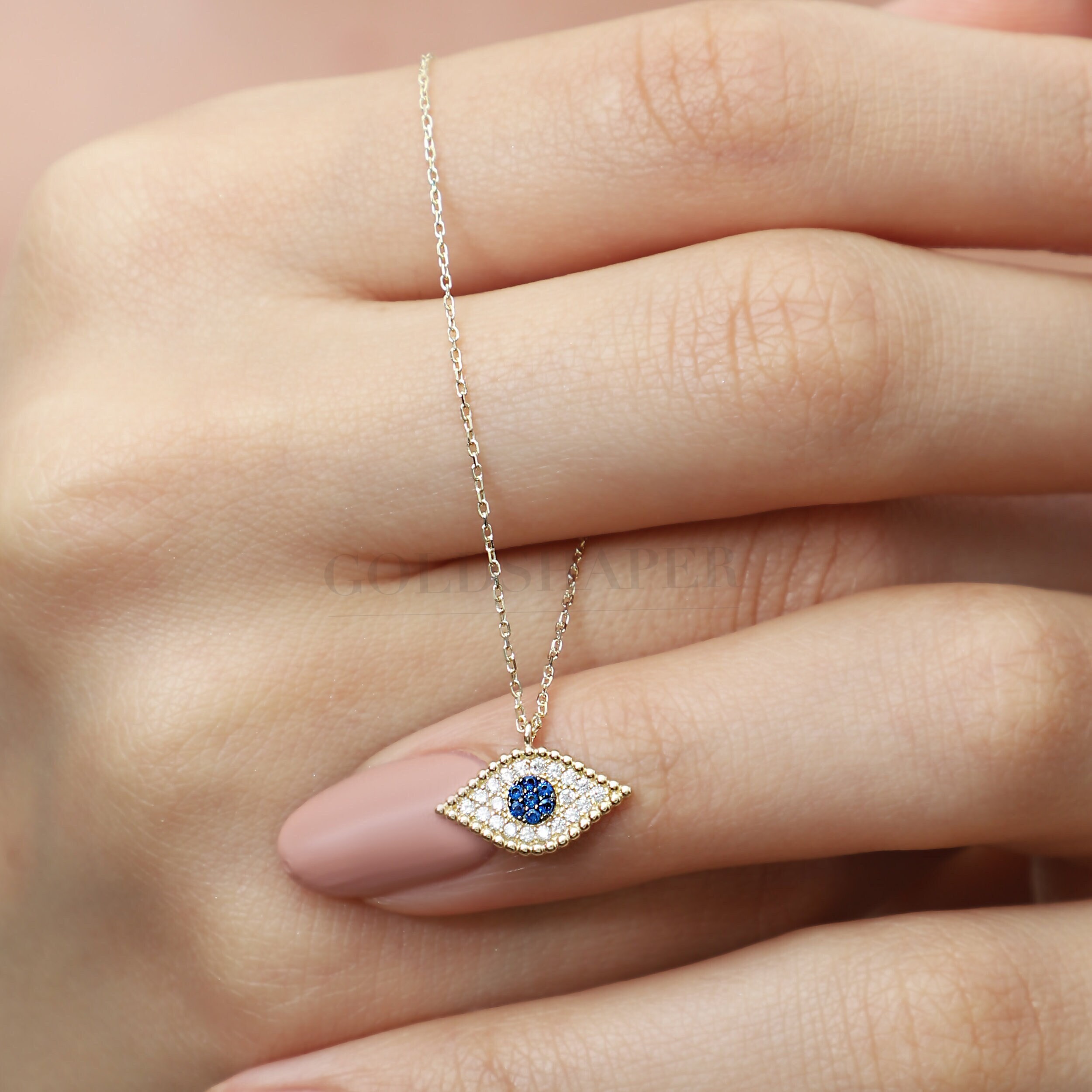 14K Gold Evil Eye Necklace, Gold Evil Eye Necklace, Eye Necklace, Evil Eye Charm Necklace, Nazar Necklace, Evil Eye Pendant, Gold Necklace.