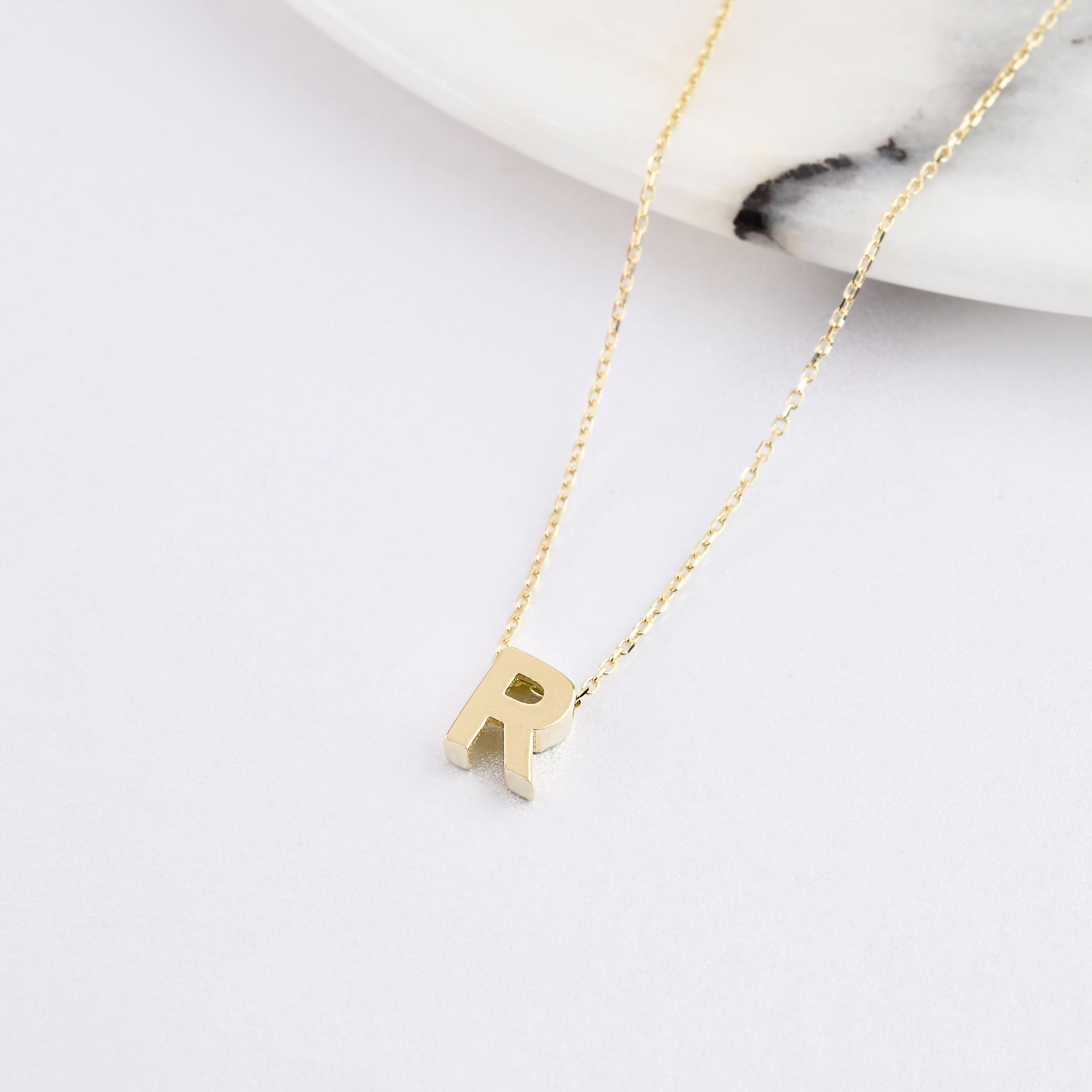 14K Gold Letter Necklace, Gold Initial Letter Necklace, Letter Necklace, Tiny Letter Necklace, Gold Necklace, Letter Gold Pendant.