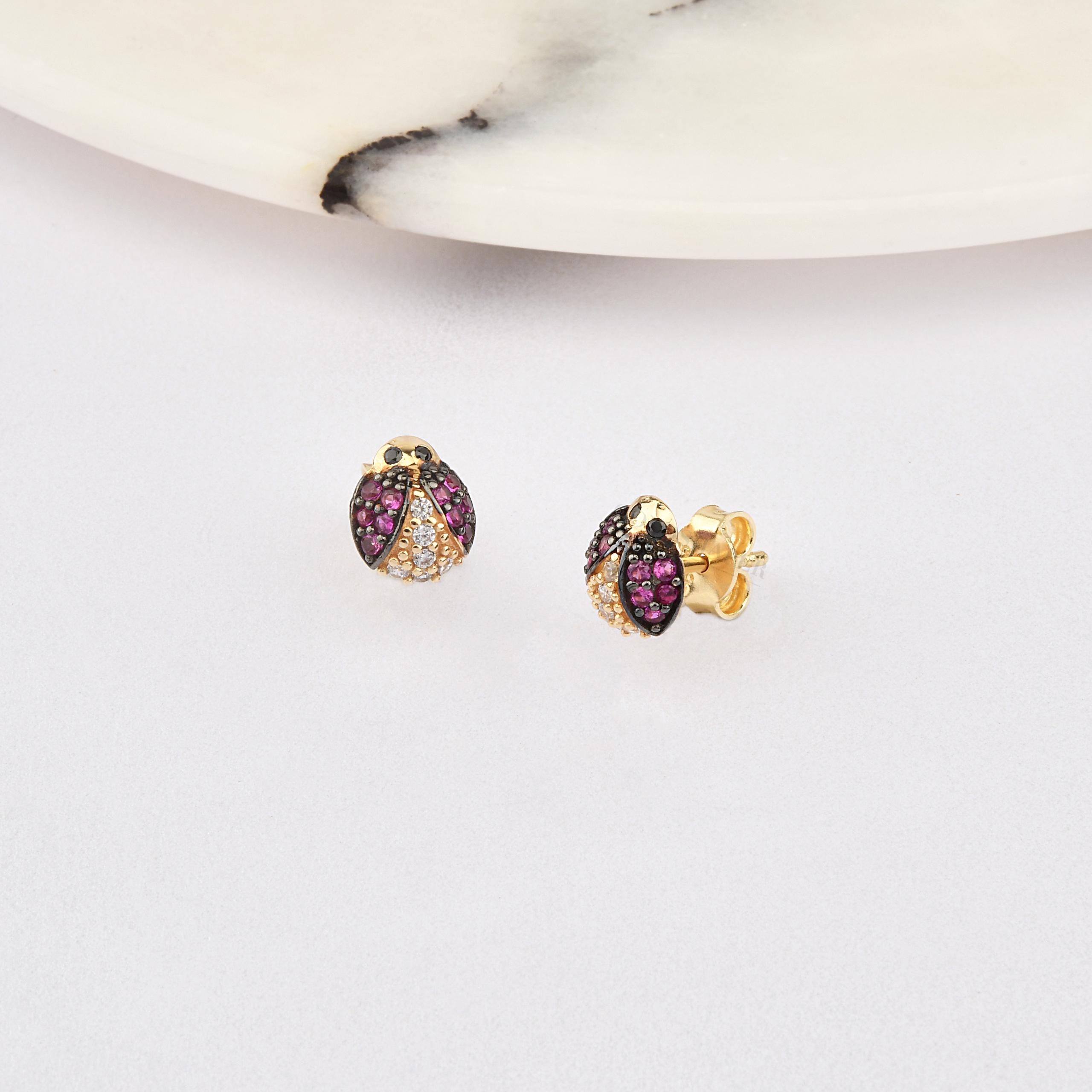 Ladybug Gold Earrings, 14K Gold Ladybug Earrings, Ladybug Gold Stud Earrings, Ladybird Earrings, Ladybird Gold Earrings, Gold Stud Earrings.