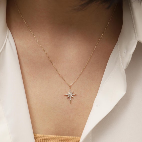 14K Gold North Star Necklace, Gold North Star Necklace, North Star Charm Necklace, Star Necklace, North Star Pendant, Gold Necklace.